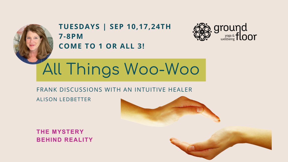 Join us for frank discussions with an intuitive healer. Alison Ledbetter is a Spiritual Coach, a practicing Medium, an Intuitive Healer, a Shaman, a Reiki Master, and Mediation teacher. Join us for heart and eye opening discussions that will touch on all the things that exist just under the surface of our everyday lives. Come with curiosity and leave with a newfound understanding of a wide variety of All Things Woo-Woo!
