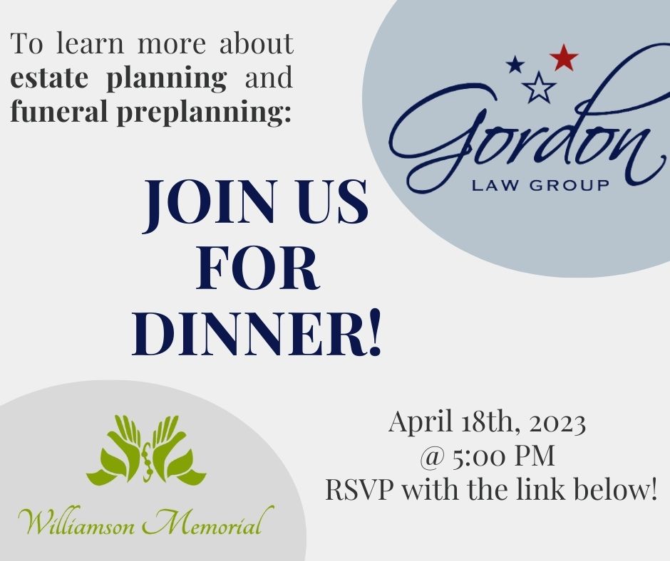 Gordon Law Group and Williamson Memorial are partnering to answer your questions and teach you what you don’t know about estate planning and funeral preplanning.