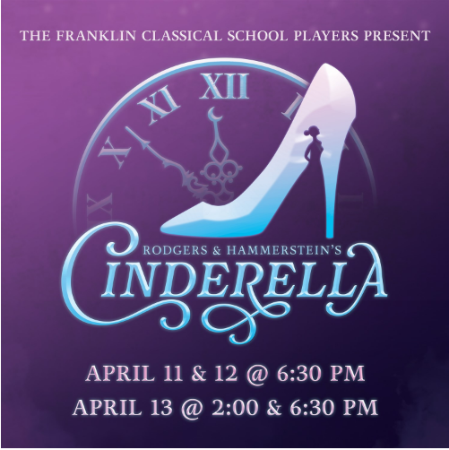 The beloved tale of Cinderella has been seen and heard around the world, with its roots reaching as far back as ancient Egypt and Greece. In fact, many cultures have created their own versions of this beautiful story of redemption. Rodgers and Hammerstein’s Cinderella features such memorable songs as “In My Own Little Corner,” “Stepsister’s Lament,” and “Ten Minutes Ago.” With direction by Melissa Austin, Cinderella is performed by a cast of 7th-12th grade theatre students. Note that evening performances are at 6:30 pm. Audiences will be charmed and enraptured by the Franklin Classical School Players’ Cinderella!