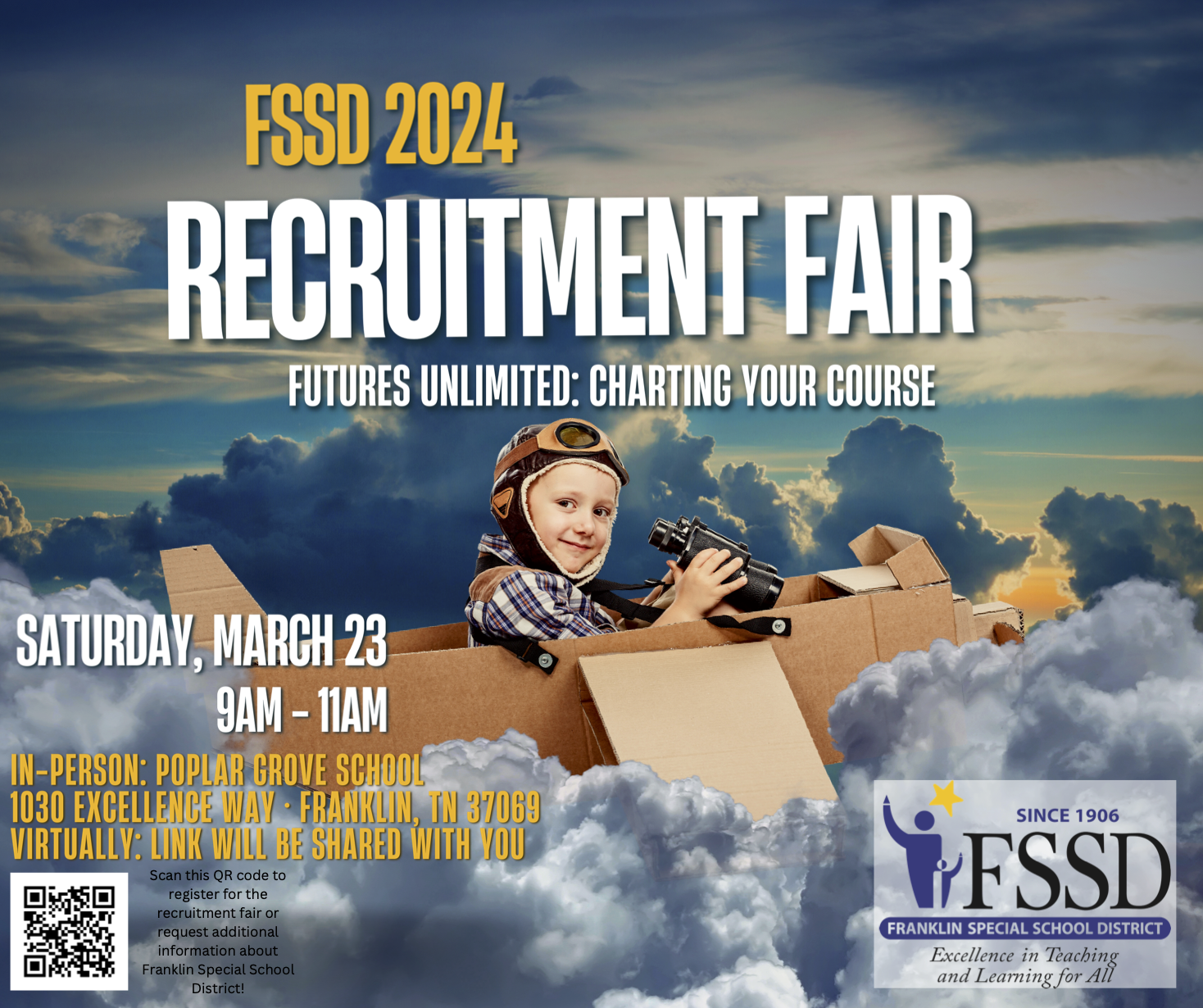 Virtual job-seekers can join in from your location by going to www.fssd.org on the day of the event to access the zoom link.