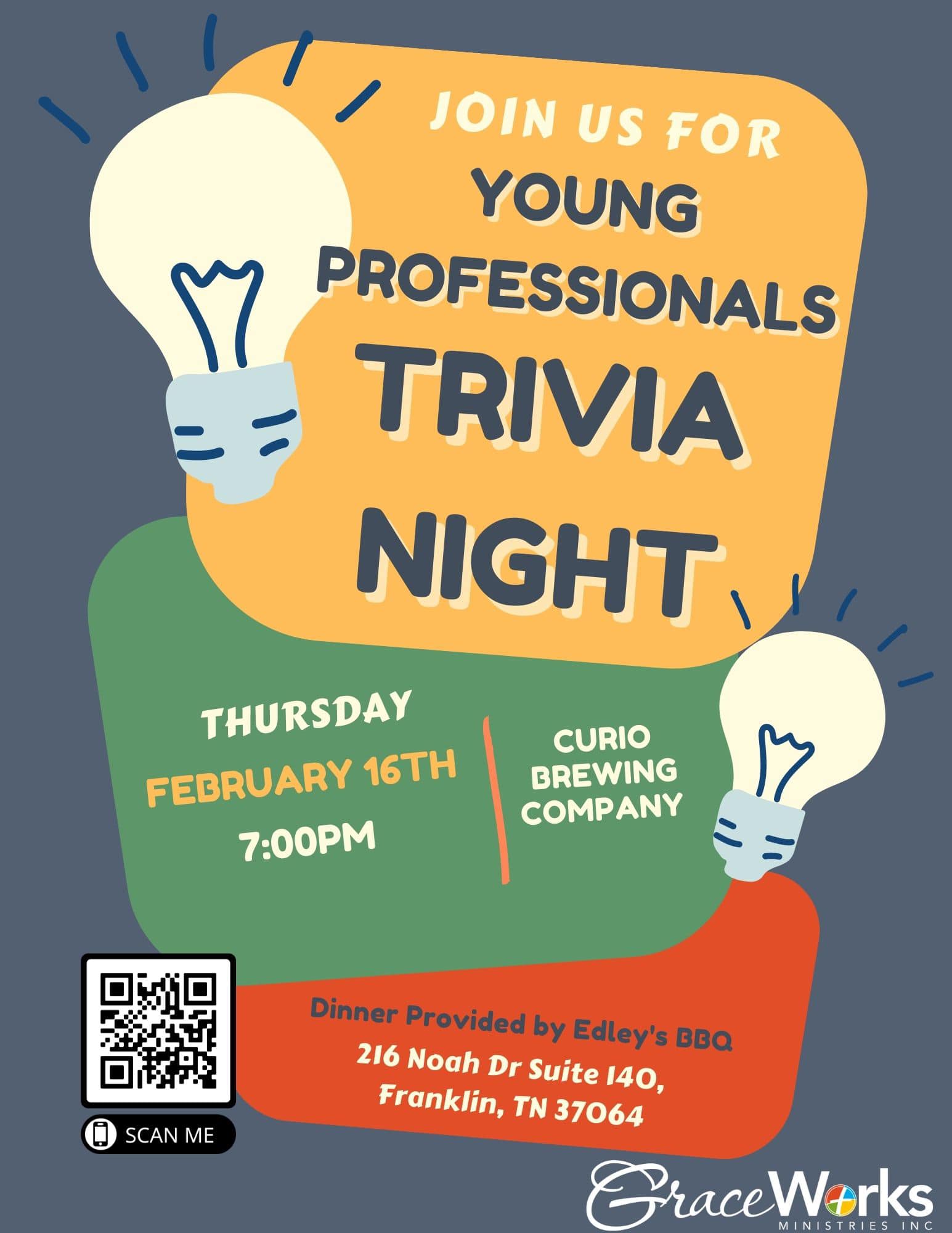 Young Professionals, please join us on Thursday, February 16th, at Curio Brewing Company, at 7pm! Edley’s BBQ will be providing dinner, and drinks from Curio will be available for purchase at the event. Please register your team with the event link provided. We hope to see you there!