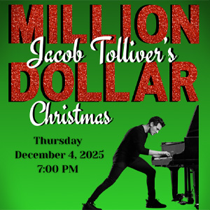 Back by POPULAR DEMAND, pianist and entertainer Jacob Tolliver returns December 4 to relive the legendary Million Dollar Quartet jam session. A former opener for Jerry Lee Lewis and star of the Broadway hit Million Dollar Quartet, Jacob brings the music of Elvis, Jerry Lee, Johnny Cash, and Carl Perkins to life—plus a festive holiday twist and a few of his own original tunes. Experience the songs, stories, and energy that changed music forever.