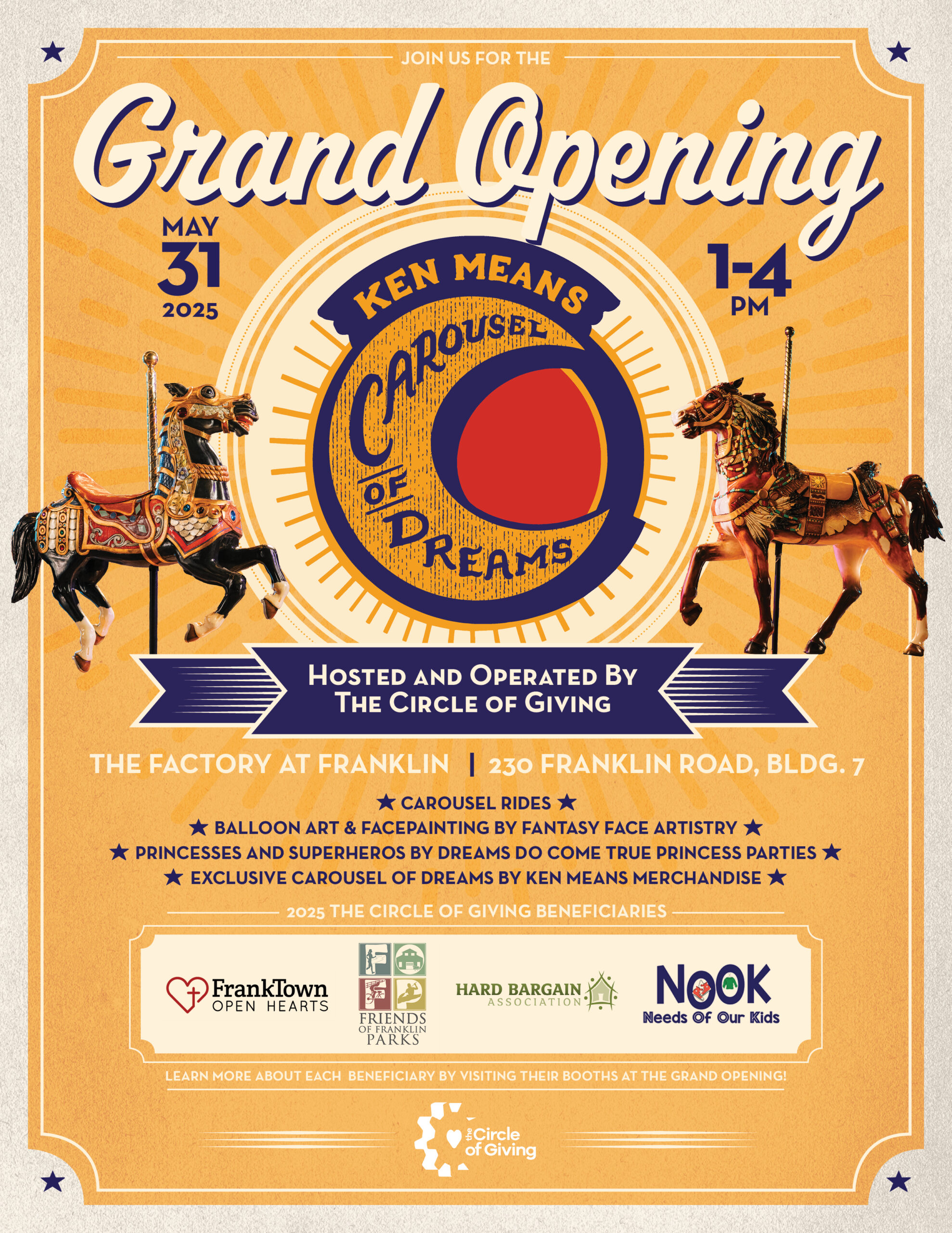 Join us for the much-anticipated Grand Opening of The Carousel of Dreams by Ken Means! The carousel opens to the public at 10:00 AM, with early rides available before the…
