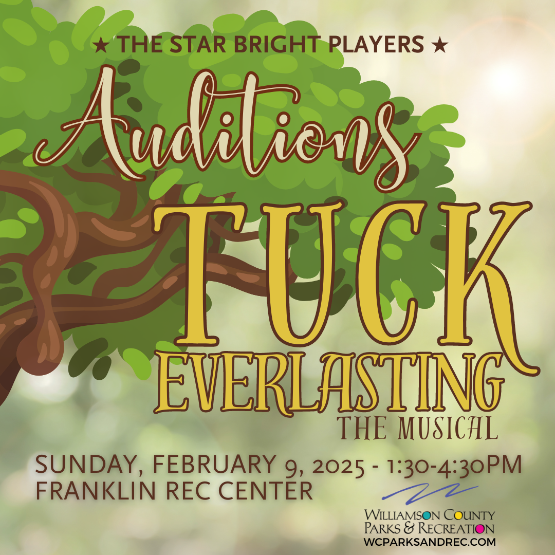 For the spring of 2025, the Star Bright Players production will be Tuck Everlasting, the touching, warm-spirited musical based upon the American children’s novel of the same name by Natalie Babbitt with music by Chris Miller, lyrics by Nathan Tysen, and book by Claudia Shear and Tim Federle. What would you do if you had all eternity? Eleven-year-old Winnie Foster yearns for a life of adventure beyond her white picket fence, but not until she becomes unexpectedly entwined with the Tuck Family does she get more than she could have imagined. When Winnie learns of the magic behind the Tuck’s unending youth, she must fight to protect their secret from those who would do anything for a chance at eternal life. As her adventure unfolds, Winnie faces an extraordinary choice: return to her life, or continue with the Tucks on their infinite journey.