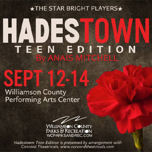 WCPR Children’s Theatre’s Star Bright Players present Hadestown: Teen Edition, the full-length adaptation of Anaïs Mitchell’s Hadestown, modified for performance by teen actors for family audiences. This intriguing and beautiful folk opera delivers a deeply resonant and defiantly hopeful theatrical experience. Following two intertwining love stories – that of young dreamers Orpheus and Eurydice, and that of immortal King Hades and lady Persephone – Hadestown invites audiences on a hell-raising journey to the underworld and back. Inspired by traditions of classic American folk music and vintage New Orleans jazz, Mitchell’s beguiling sung-through musical pits industry against nature, doubt against faith, and fear against love. (This production is rated PG-13.)