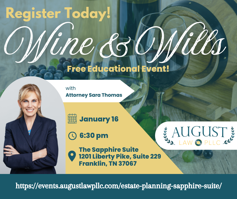 Grab a glass and join us for Wine & Wills! It’s a fun and free educational event with Attorney Sara Thomas to learn all about estate planning. 📝