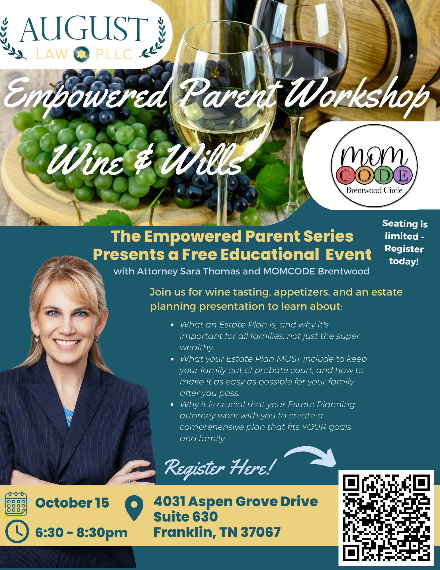 August Law PLLC and MOMCODE Brentwood are hosting a FREE educational event as part of the Empowered Parent Series.