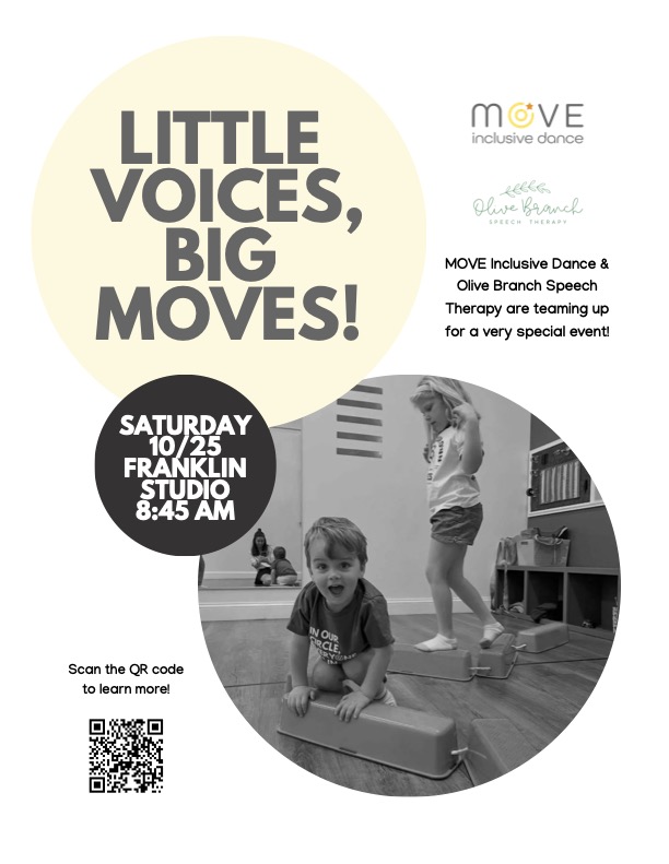Join MOVE Inclusive Dance and Olive Branch Speech Therapy for a fun-filled morning designed to get little bodies moving and little voices chattering! Perfect for children ages 5 and under,…