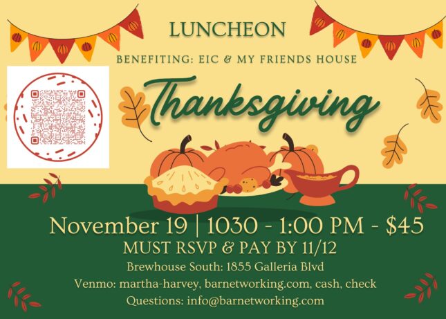 It’s time once again for our Annual Thanksgiving Luncheon! Join us as we celebrate the season of gratitude while supporting two incredible local organizations — the Entrepreneurship and Innovation Center…